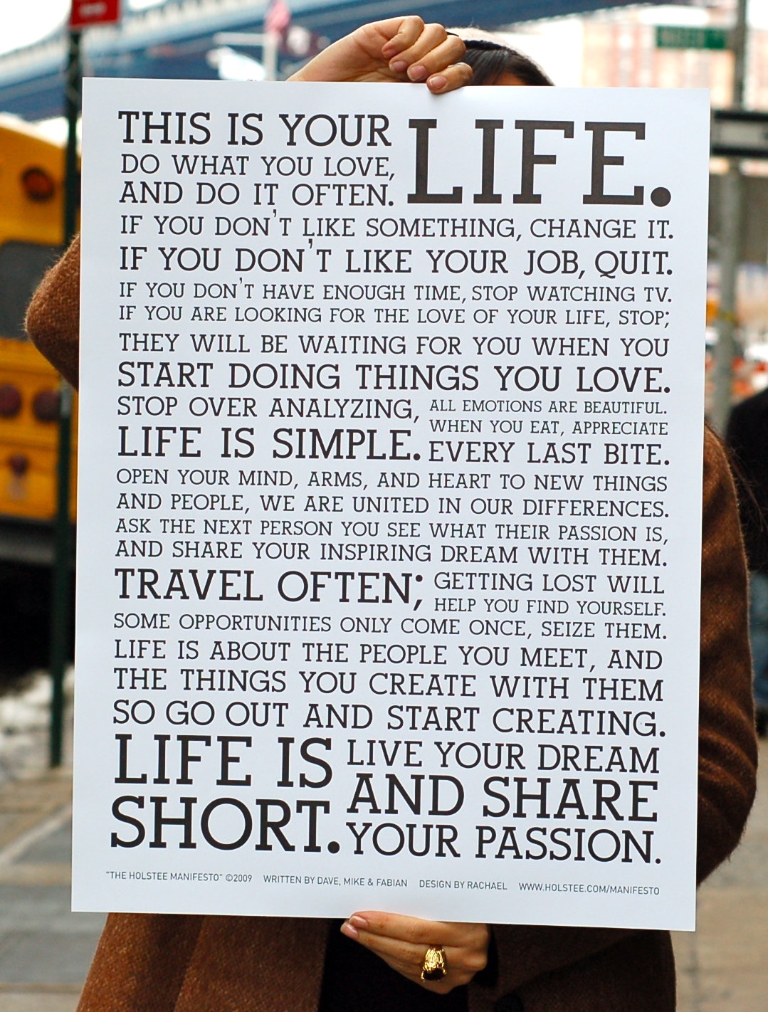 … das Jahr, in welchem ich nach folgendem Manifesto leben werde.