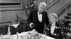 Und das nicht nur an Silvester. Ein Service-Hinweis, bis dann sind es noch 55 Tage! Die 4 Herren sind eigentlich eine ganz gute Mischung an Menschen. Neben den Namen der 4 posthumen Gäste, bleibt ja auch das Menü eine Herausforderung. Neben der Mulligatawny-Suppe, Schellfisch aus der Nordsee (North Sea haddock), Hühnchen (chicken) und Obst (fruit) die serviert werden, sind auch die Getränke: Sherry, Weisswein, Champagner und Portwein eine Herausforderung. Vor allem da James in die Rollen der obigen Personen sein muss und auf die Gastgeberin jeweils einen Toast ausbringen soll und den jeweiligen Gast nachahmt und dessen Glas austrinkt.