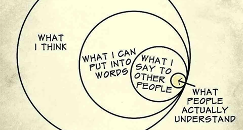 Sie kennen das Problem. Gedanklich ist der Plan nun gefasst. Sie wissen, was sie, wie tun wollen. Und jetzt versuchen sie all das ihren Leuten zu sagen und sind am Schluss überrascht, wie viel eigentlich angekommen ist. Die nebenstehende Grafik beschreibt die Herausforderung sehr schön.