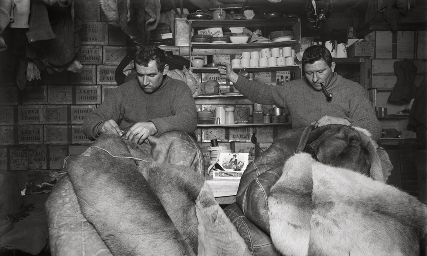 Früher wurden die Schlafsäcke ja aus Rentier Fellen hergestellt. Und die wichtigste Frage war, welche Seite wo ist. Das Fell Aussen oder Innen? Das folgende Gedicht von Herbert George Ponting, dem Fotografen der Expedition von Captain Scott beantwortet dieses Frage.