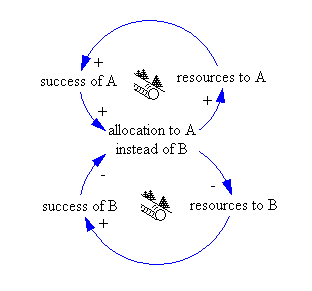 Eingeführt hat den Begriff Peter Senge, dessen Buch: The Fifth Discipline aus dem Jahre 1990 den Begriff der lernenden Organisation prägte. Dieses sehr empfehlenswerte Buch, hier eine Mindmap dazu von Bonni Stachowiak, war das erste Buch, welches Zusammenhänge durch ganze einfache Bilder erschloss, wie dasjenige im Beitrag. Dieses Basis-Abläufe erlauben es ganze Systeme zu verstehen und bringen System- und Design-Thinking zusammen.