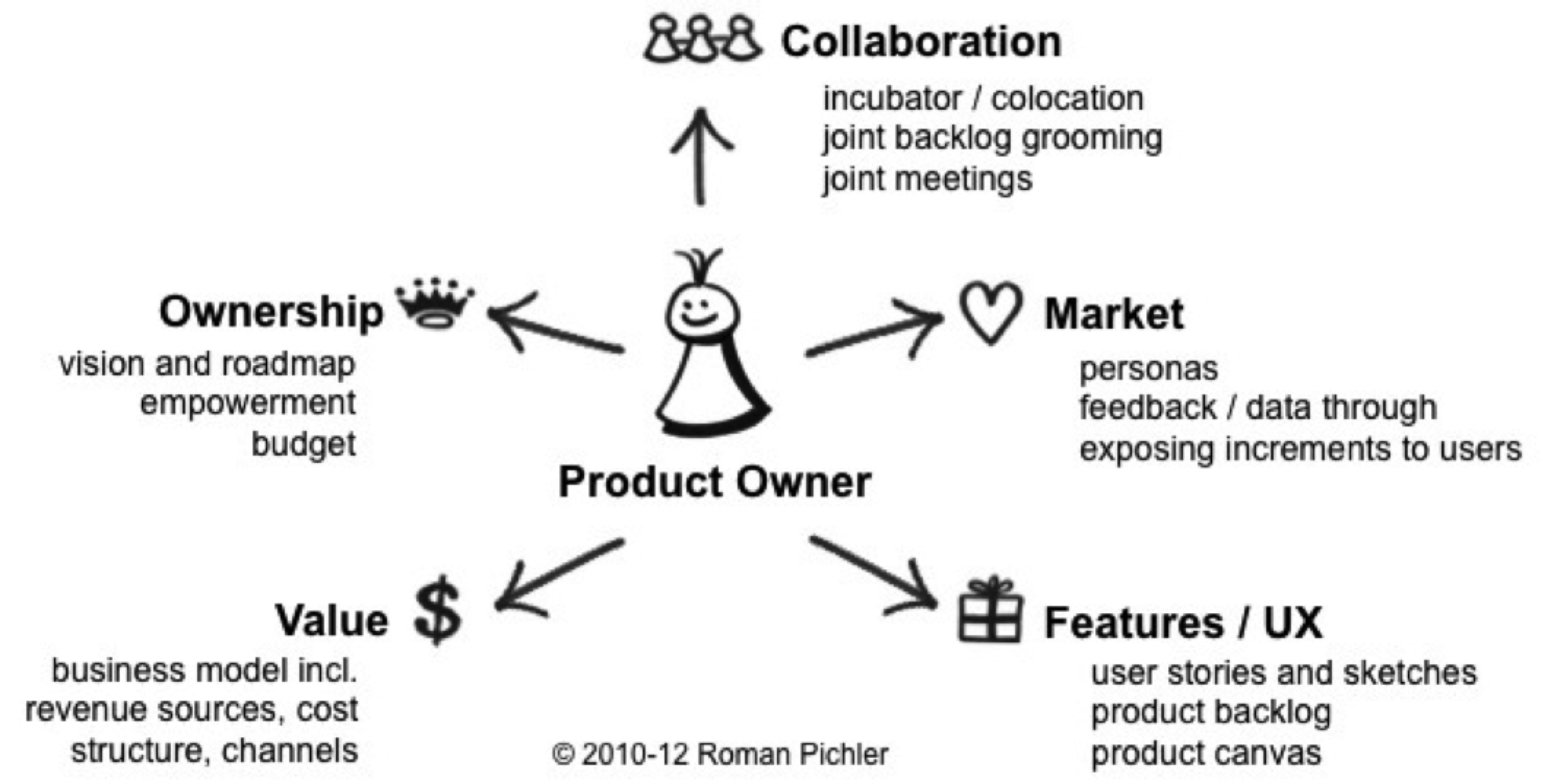 Daneben ist er für die Kommunikation zwischen den Stakeholdern, wie dem Projektteam, dem Management des eigenen Unternehmens und dem Kunden verantwortlich. Er nimmt die Wünsche des Kunden auf und sorgt für deren Berücksichtigung im Projekt. Damit hat die Rolle grossen Einfluss auf die Produktentwicklung.