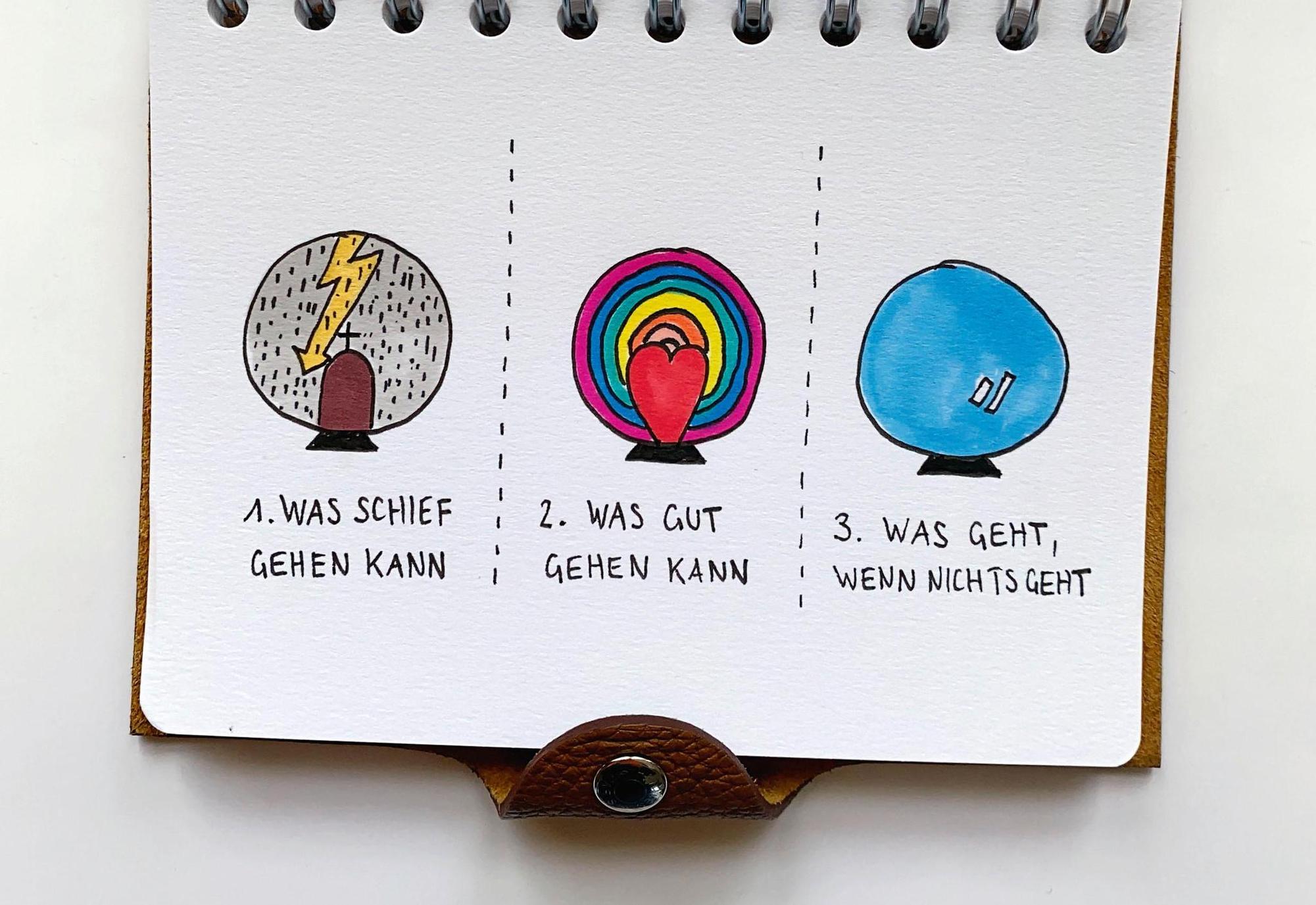 Letzte Woche ist mir im «Das Magazin» (hinter der Paywall) in der Kolumne Krogerus & Tschäppeler Kleines Lob der Negativität, das Beitrags-Bild begegnet. Es hat mich daran erinnert, wie ich mir gute Planung vorstelle. Ihr Vorschlag ist: