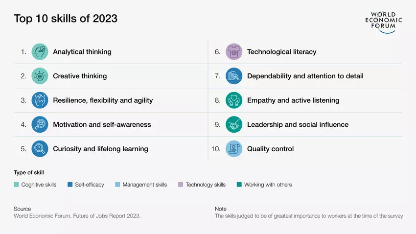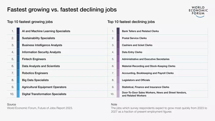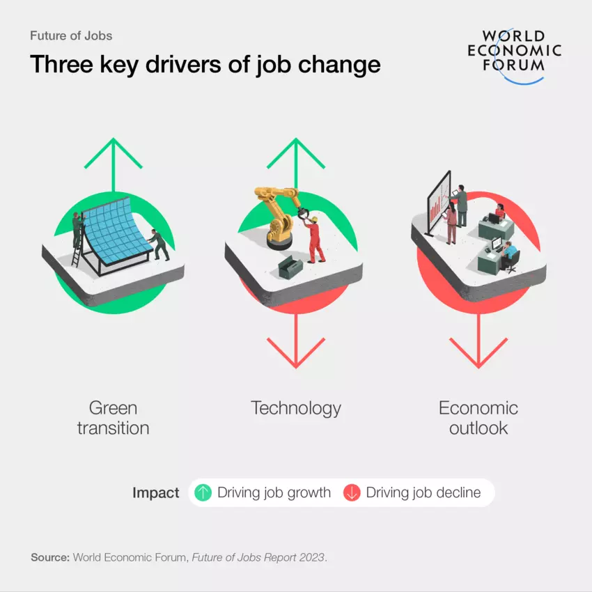 In der 2023 Ausgabe von «The future of Jobs Report» des WEF werden Aussagen über die Zukunft der unserer Arbeitsplätze gemacht. Die vorliegende vierte Ausgabe der Reihe setzt die Analyse der Arbeitgebererwartungen fort und liefert neue Erkenntnisse darüber, wie sozioökonomische und technologische Trends den Arbeitsplatz der Zukunft prägen werden. Sie zeigt auch auf, welche Fähigkeiten und Qualifikationen benötigt werden.