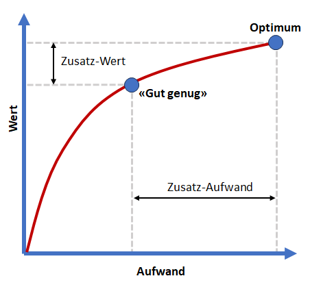 Grundsätzlich genügt «Gut genug» in fast allen Fällen. Wer sich für die theoretische Forschung interessiert, dem sei Herbert Simon, ein Pionier der Entscheidungstheorie empfohlen. Seiner Ansicht nach gibt es zwei Gruppen von Entscheidern: Diejenigen, die nach dem Optimum suchen und dabei sehr viel Zeit und Ressourcen verwenden. Auf der anderen Seite gibt es die «Gut genug» Fraktion, die schnell entscheiden und erst dann wieder eine Entscheidung hinterfragen, wenn sie etwas Besseres gefunden haben.