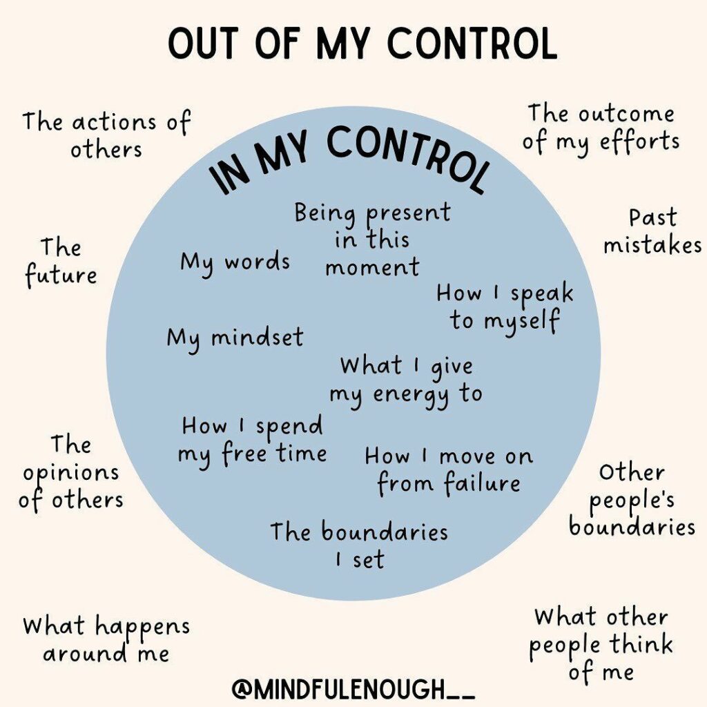 Meine wichtige Erkenntnis ist auf dem nächsten Bild zusammengefasst. Es gibt Dinge, welche ich beeinflussen kann und es gibt Dinge, die ich nicht beeinflussen kann und wo meine Verantwortungsübernahme endet.